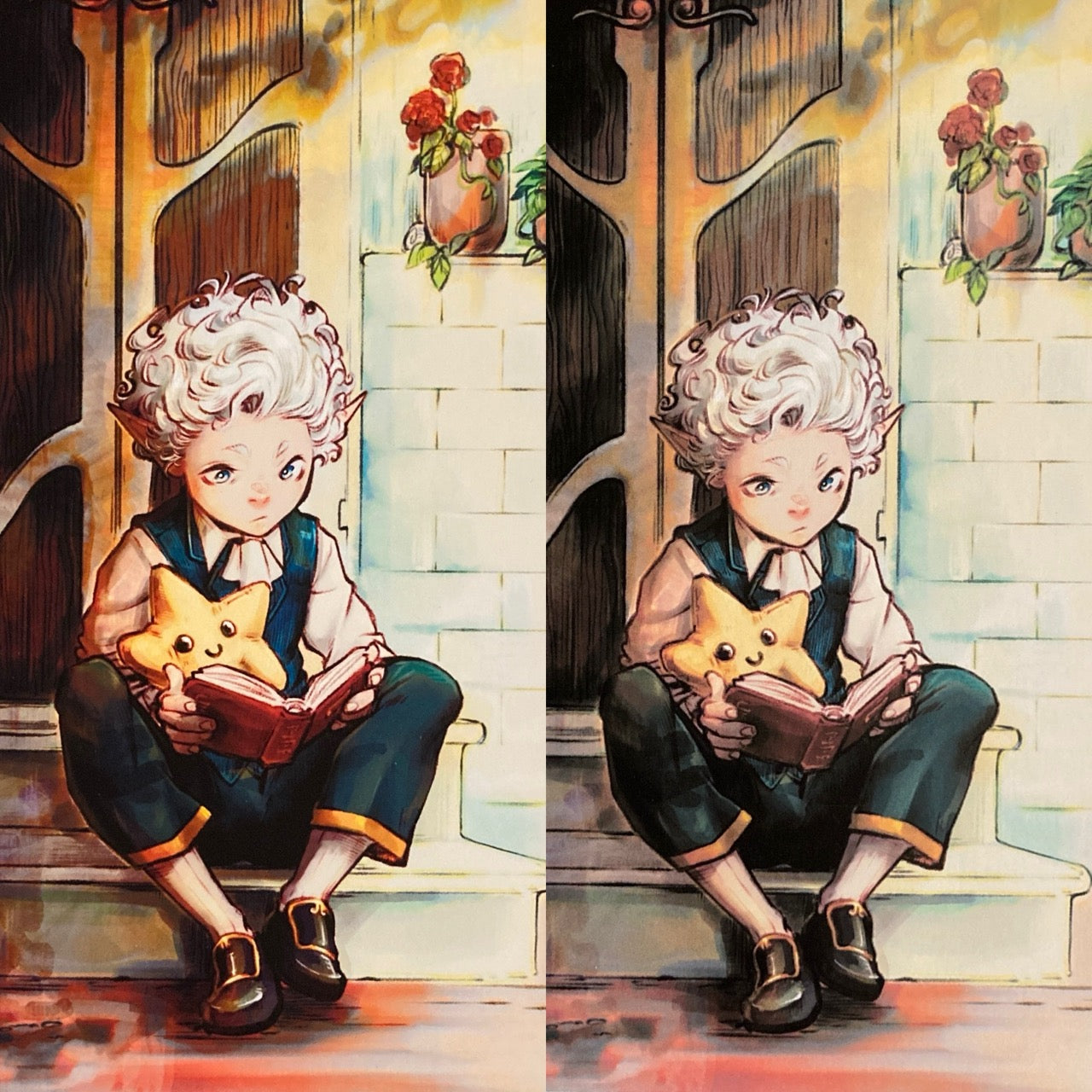 Holographic effect is added with an additional holo foil applied on top and sealed with heat; the surfaces reflects light playing with the illustration underneath; base paper is High quality.